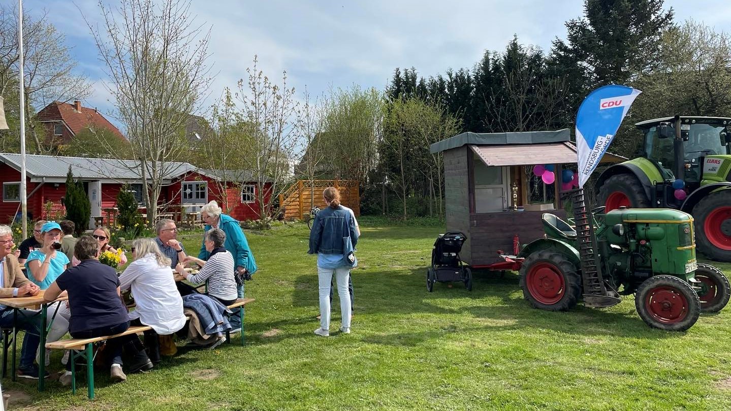 Tolle Stimmung und viel Zulauf bei der CDU Rieseby mit dabei Altbürgermeister Johann „Hannes“ Kempe, Spitzenkandidat Gerhard Muhl und Peter Thordsen aus Güby.