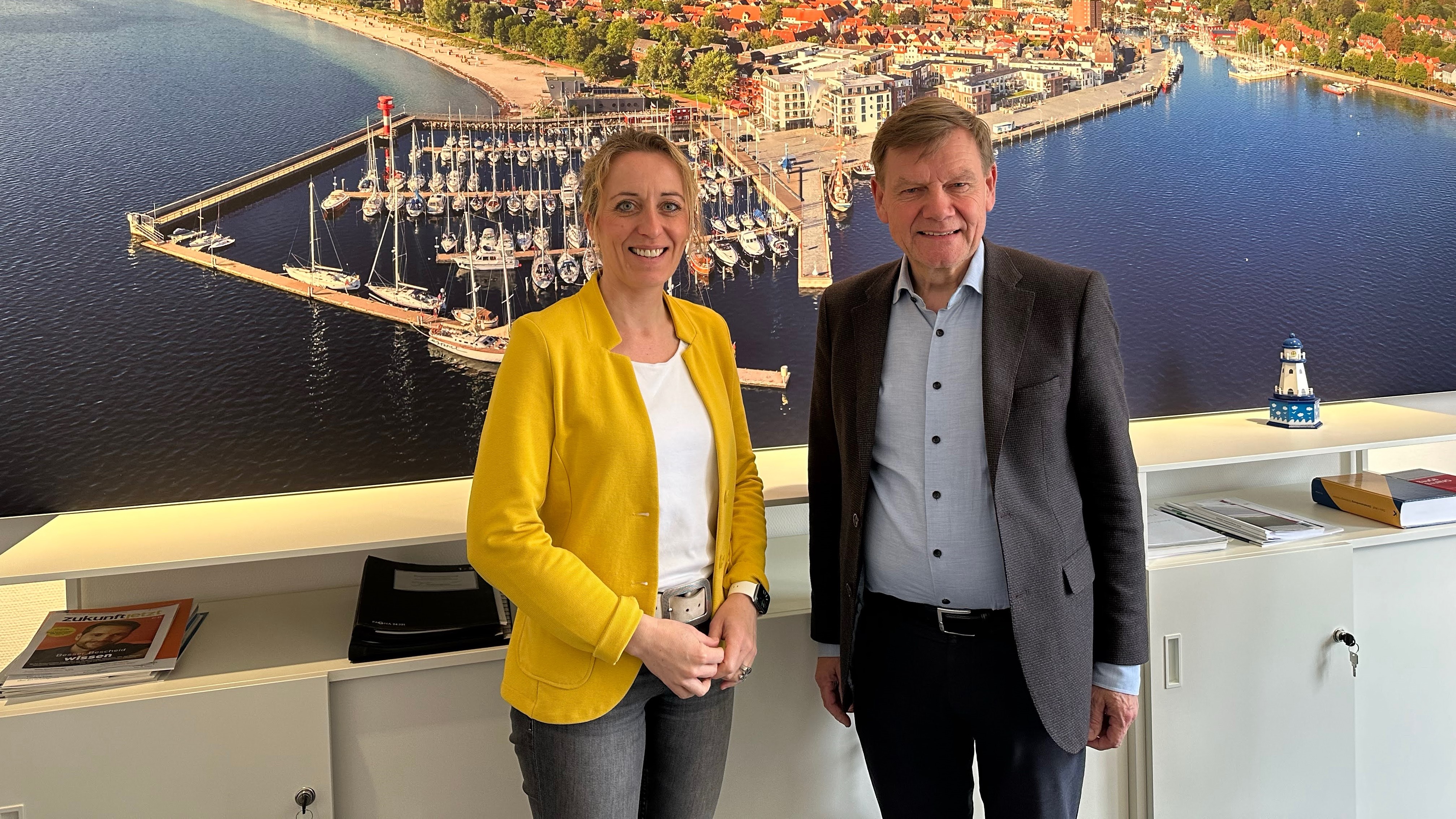 Moin! Auf Tour durch den Wahlkreis zu Gesprächen mit politischen Mandatsträgerinnen und -trägern - heute war ich in Eckernförde, um mit der Bürgermeisterin Iris Ploog zu sprechen. Wir haben einen Rundumschlag gemacht: Von den großen Fortschritten bei der Beseitigung der Sturmschäden über den schwierigen Immobilienmarkt in der Stadt bis hin zum Marinehafen gab es eine ganze Bandbreite an Themen. Es läuft in Eckernförde, aber es ist immer gut, auf dem neuesten Stand zu sein. Ich bedanke mich sehr herzlich für den Austausch.