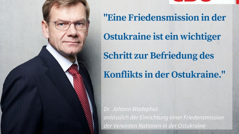 Die Außenminister Deutschlands, Frankreichs, der Ukraine und Russlands haben am gestrigen Montag die Einrichtung einer Friedensmission der Vereinten Nationen in der Ostukraine vereinbart. Die Regularien sind aber noch offen. Dazu erklärt der stellvertretende Vorsitzende der CDU/CSU-Bundestagsfraktion, Johann David Wadephul: