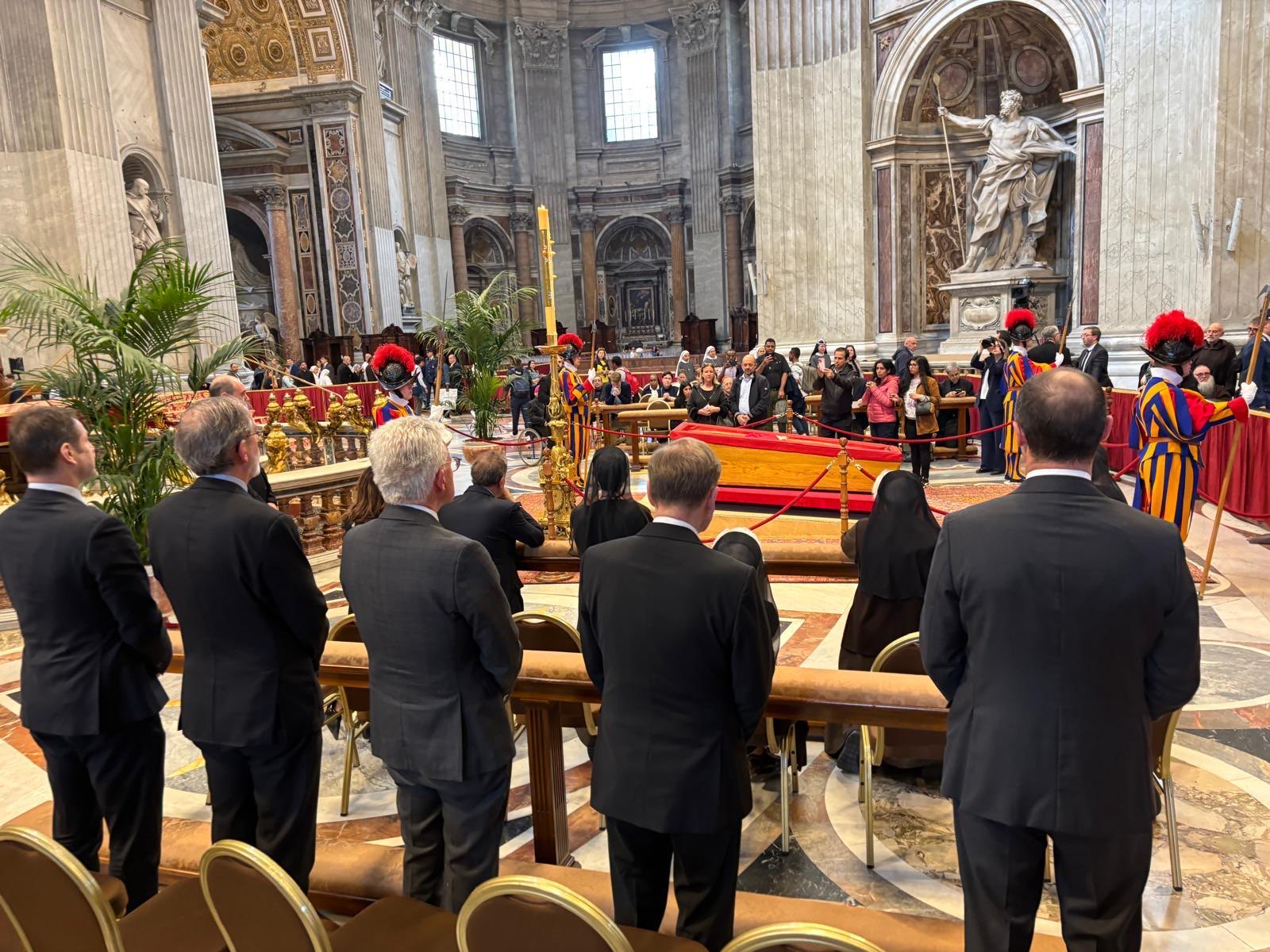 Papst Franziskus hat sich stets für die Ärmsten und Schwächsten dieser Welt eingesetzt. Er war ein Brückenbauer, dem wie mir die Ökumene sehr am Herzen lag. Auch als Protestant zolle ich ihm allerhöchsten Respekt und Anerkennung. Es war mir eine ganz besondere Ehre, ihm heute hier im Petersdom die letzte Ehre zu erweisen. Möge sein Andenken Richtschnur unseres Handelns bleiben.